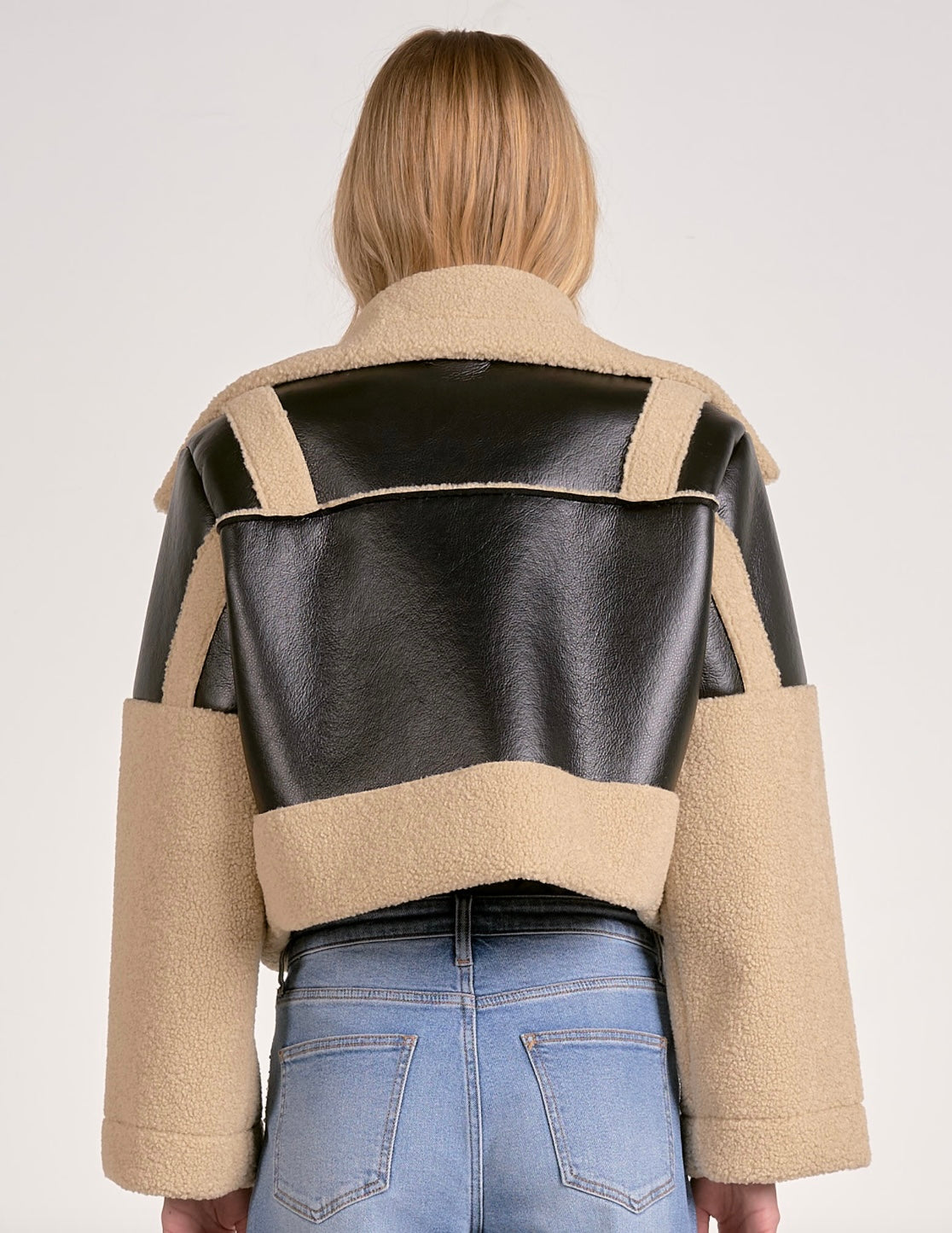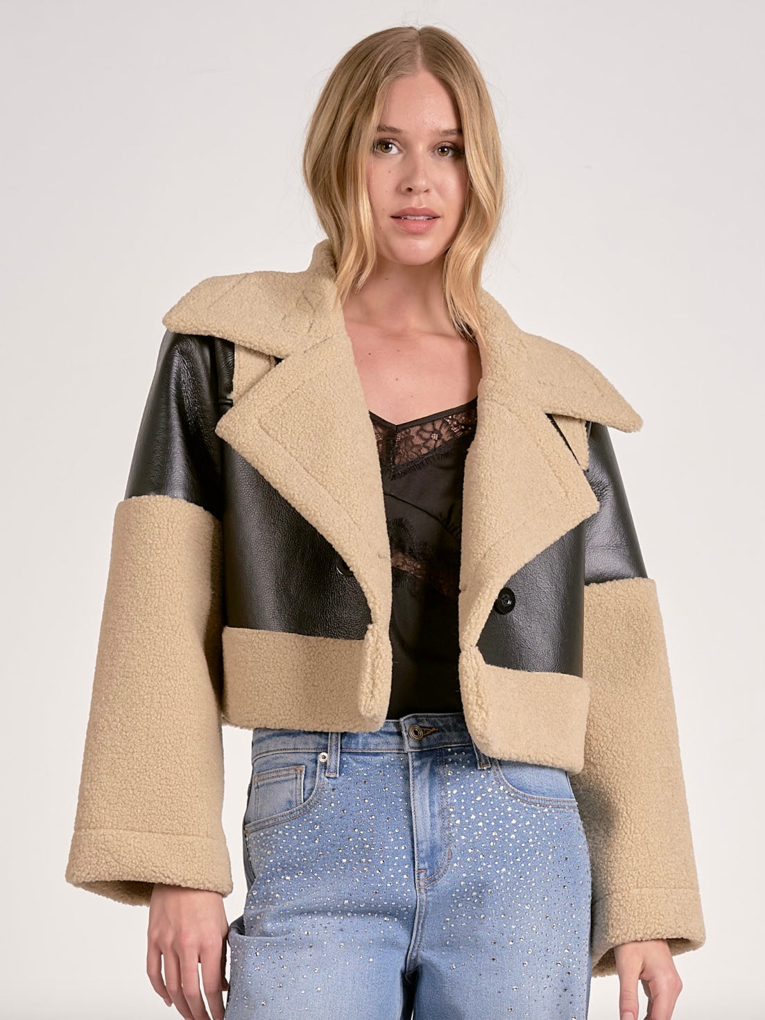 Stay warm this winter with the Black and Beige Color Block Jacket. Featuring cozy sherpa trim and lining, it offers a perfect blend of edgy style and ultimate comfort. This jacket keeps you toasty while elevating your look with its striking color contrast. Ideal for chilly days, it’s both cute and functional, making it a must-have addition to your cold-weather wardrobe.