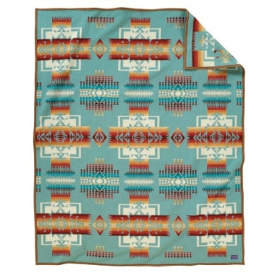 A smaller, square size of our iconic blanket, historically worn for traditional dances and ceremonies. First woven in the 1920s, our Chief Joseph pattern has been one of our most popular patterns ever since. Reverses for two distinct looks.
