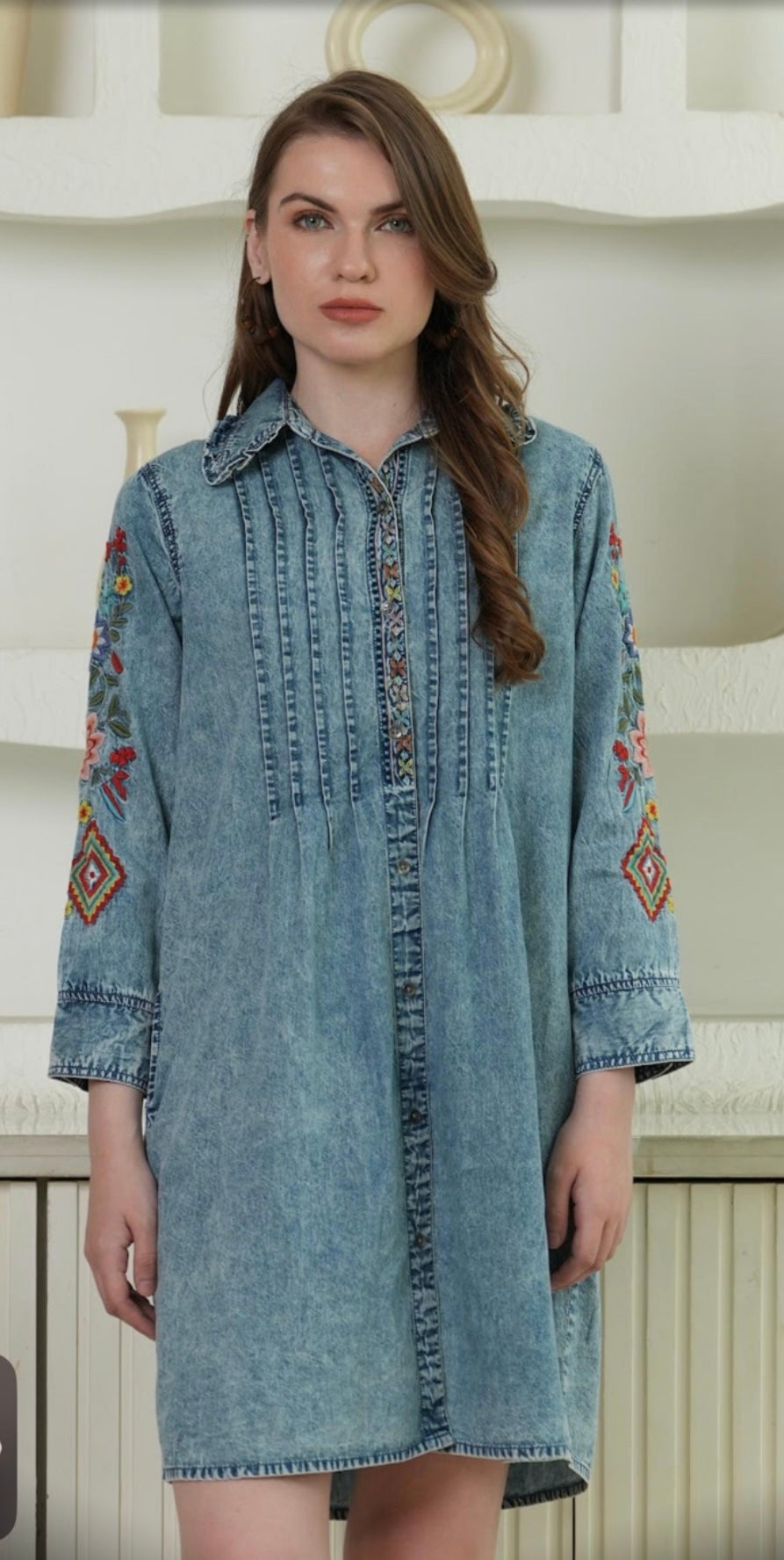 The Desert Rose Dress brings authentic western charm to your everyday wardrobe. This classic denim button-up features a crisp collar and long sleeves, crafted with beautiful embroidery that captures rustic elegance. Perfect for adding a touch of southwestern flair to any outfit, whether you're dressing up for a night out or keeping it casual. A timeless piece that blends comfort with distinctive style.