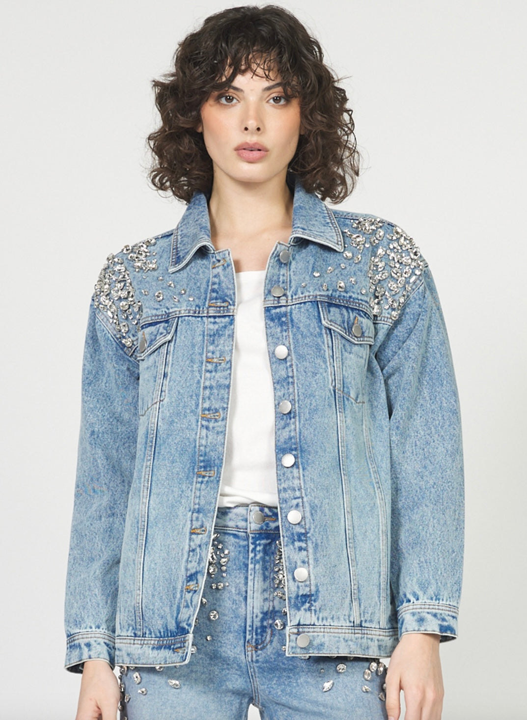 Elevate your everyday look with the Janette Denim Jacket featuring stylish embellishments on the shoulders. This standout piece effortlessly transforms casual outfits into chic ensembles, adding a unique touch of flair. Perfect for layering, it combines classic denim durability with eye-catching details, making it an essential addition to your wardrobe. Dress up your basics and make a confident statement wherever you go.