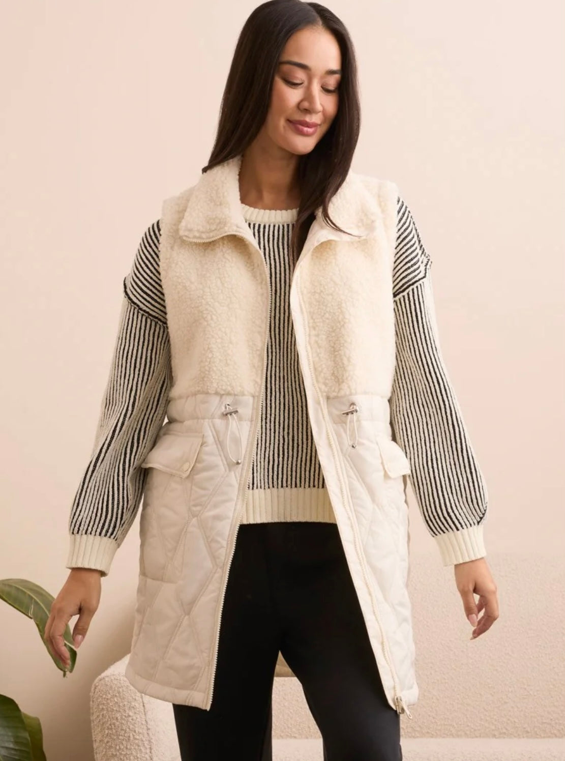 Stay cozy and stylish this winter with our Long Cream Puffer Vest. Its flattering length provides extra warmth without weighing you down, while the soft cream color effortlessly complements any outfit. Perfect for layering over sweaters or under coats, this vest keeps you comfortable and chic on chilly days. Embrace winter fashion with a piece that combines functionality and cuteness in one.