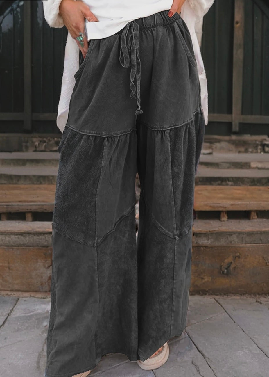 Experience ultimate comfort with these mineral wash pants featuring a wide-leg, roomy fit. The adjustable drawstring waist ensures a perfect fit while the soft, vintage-inspired mineral wash adds effortless style. Ideal for relaxed days, these pants combine comfort and fashion seamlessly. Pockets.