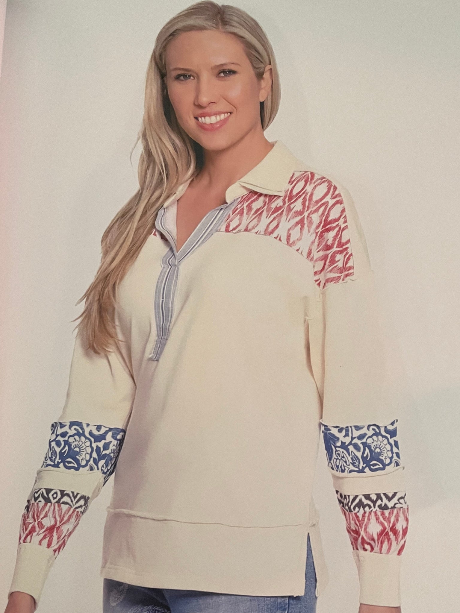 Embrace the season's fresh energy with this oversized collared pullover, crafted from luxuriously soft French terry that feels as good as it looks. Neutral cream tones provide the perfect canvas for vibrant pops of color and playful patterns that capture spring's carefree spirit. The relaxed, generous fit offers effortless comfort for layering or wearing solo, making it your go-to piece for transitional weather. Whether you're heading into the office or out for weekend adventures, this versatile pullover brings warmth, style, and that unmistakable spring awakening to your everyday rotation.