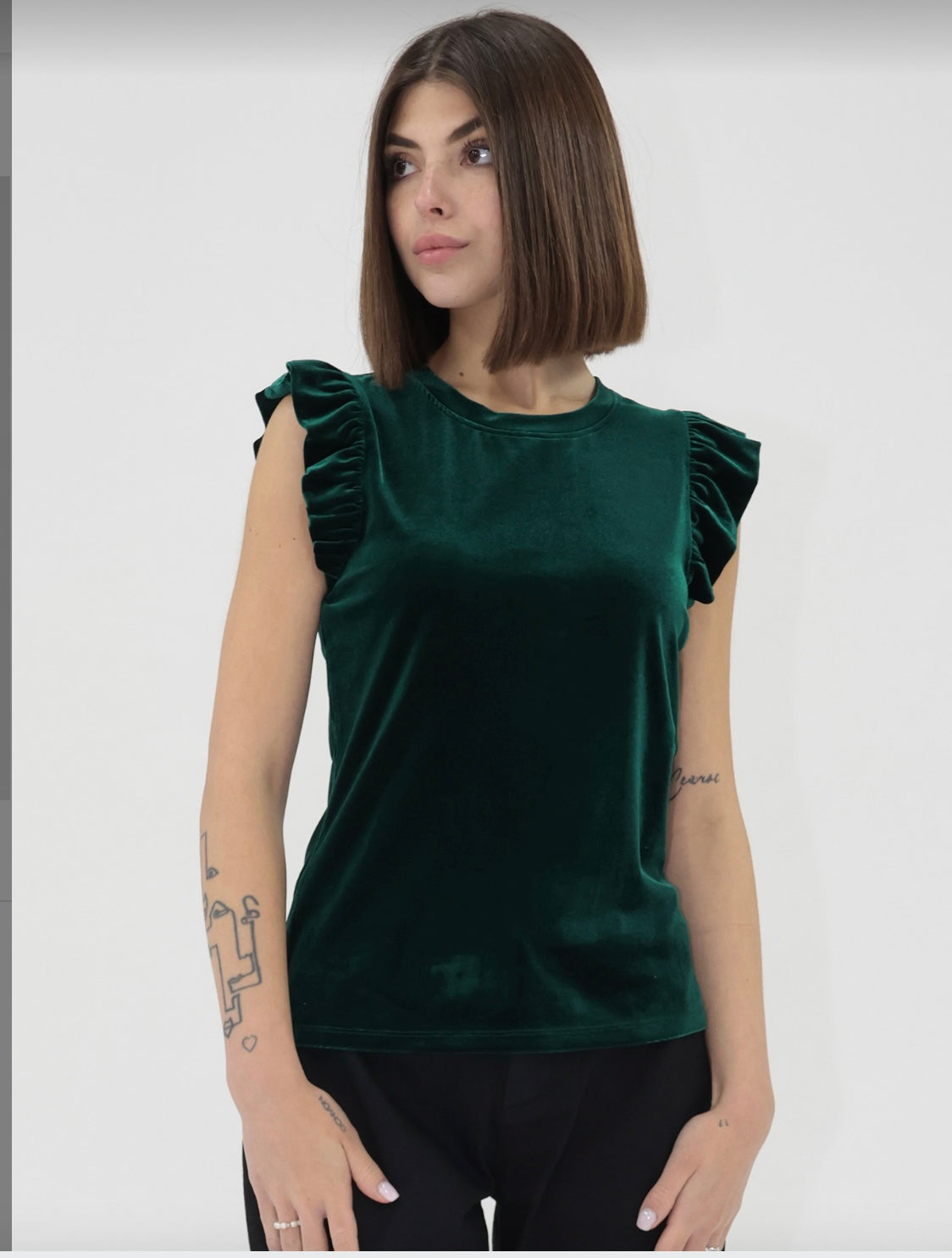 Elevate your holiday wardrobe with this luxurious velvet blouse featuring elegant ruffle sleeves that capture the spirit of the season. The soft, rich fabric drapes beautifully against your skin, creating a sophisticated silhouette perfect for festive gatherings, dinner parties, or special celebrations. Whether paired with tailored trousers or a flowing skirt, this statement piece adds instant glamour to any outfit. The delicate ruffles add dimension and movement, making you feel confident and polished throughout the season.